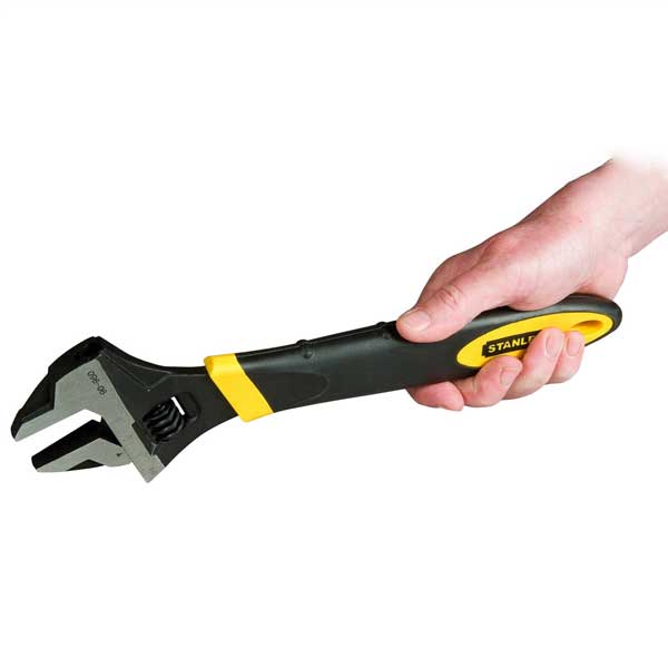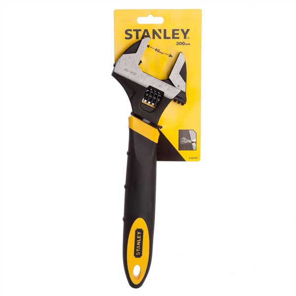 The Stanley 0-90-950 MaxSteel adjustable wrench has a 40mm/1.5" maximum jaw capacity. The wrench has measurement scales of both inches and millimetres on alternate sides for fast, accurate adjustment as well as a polished chrome finish for rust resistance.